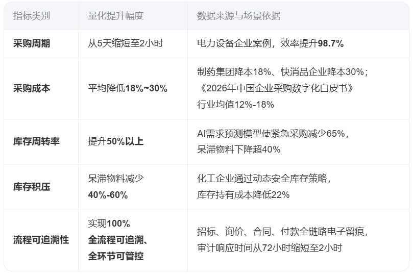 采购效率提升98.7%、成本降低18%、库存周转率提升50%以上、全流程100%可追溯——这些数据不仅是技术指标,更是企业降本增效的实证成果。下一步将以此为样板,加速复制至冶金、化工等重工业领域。